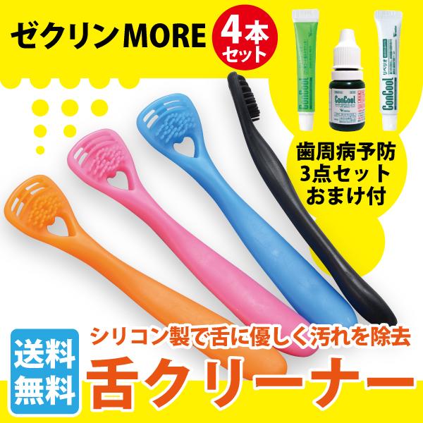 【メール便で送料無料】舌クリーナー ゼクリンMORE 4色4本入《★歯周病予防3点セットのおまけ付》《代引き不可》コンクール F(7ml)とジェルコート F(6g)とコンクールリペリオ(7g)の3点がおまけです。