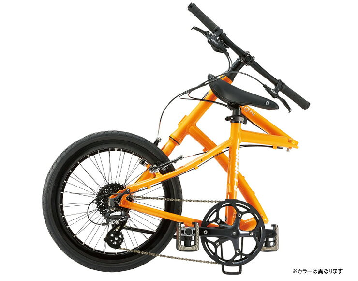 TECHNICAL FEATURES Weight 11.0kg Wheel Size 20inch(ETRTO 406) Transmission 8 Speed Folding Size (cm) W90 × H95 × D32 Saddle to Pedal (mm) 650〜885 Frame Dalloy aluminum dual arc design, Lock Jaw technology Fork Dahon Slip Stream aluminum fork Handlepost / Stem Dahon alloy stem, 100mm Seatpost Aluminum, 31.6x350mm Brakes Promax DHV-209 Brake Levers Avid FR5 Wheel / F Dahon Comp Black 406, 20H, OLD:74mm Wheel / R Dahon Comp Black 406, 28H, OLD:130mm Tires Kenda Kwest, 20x1.50, F/V Crankset Dahon Ignis 53T, single chainguard Derailleur / F N/A (w/FDmount) Derailleur / R Shimano Altus, RD-M310 Shifter Shimano SL-M310 Cassette Shimano CS-HG31, 11-32T Pedals Folding Pedal Kickstand Aluminum Others N/A Color タンジェリン / フロスティホワイト / ナイトブラック 掲載写真はサンプルモデルです。
