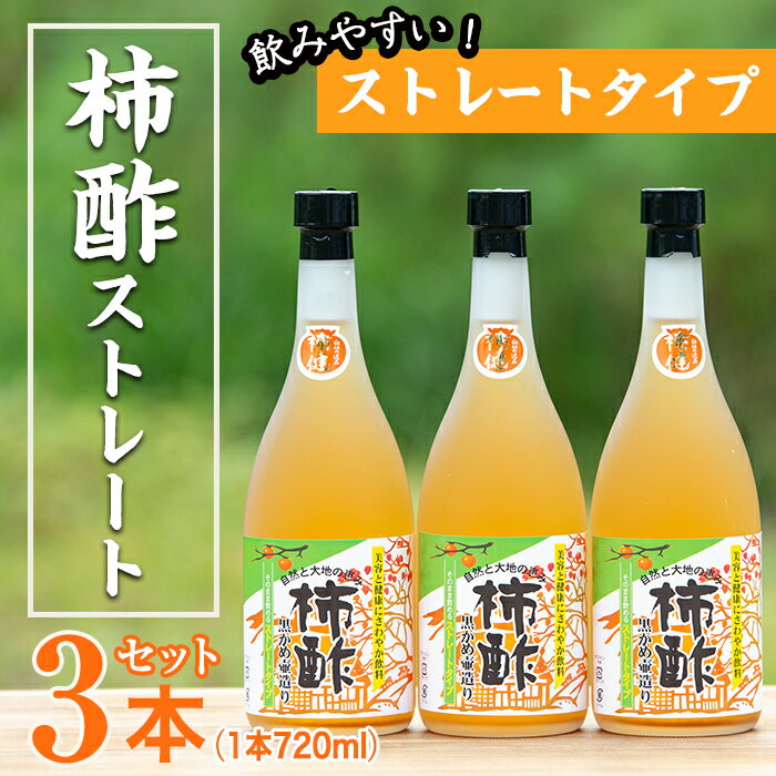 【ふるさと納税】伝統的な技法で熟成させた純粋エキスの柿酢を飲みやすくした「柿酢ストレート(720ml×3本)」飲みやすく続けやすい美味しさ!【柿健堂】2-18